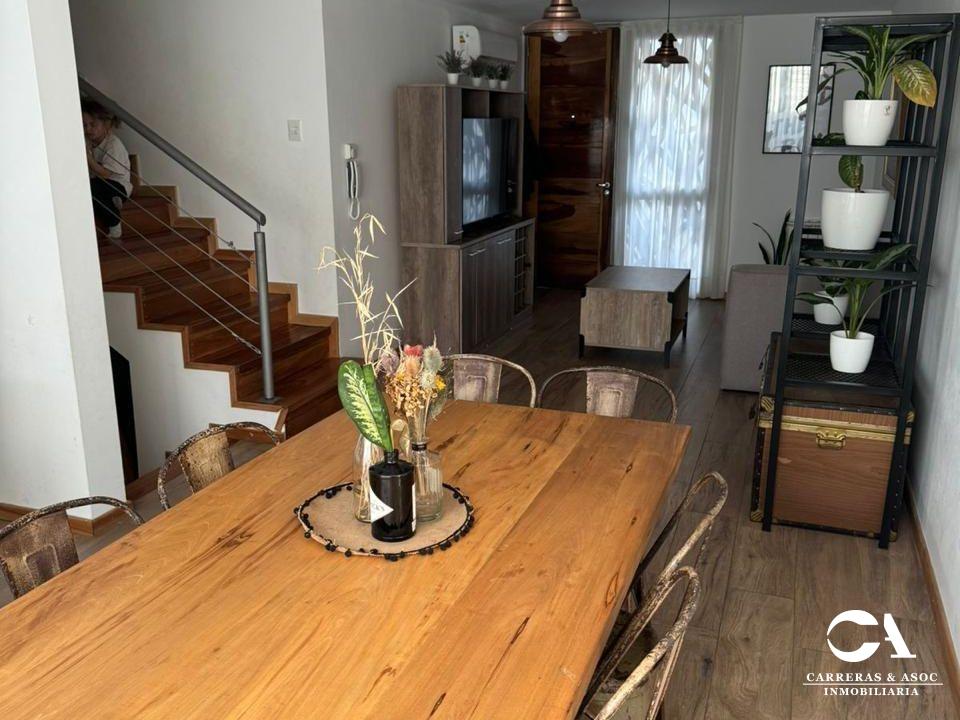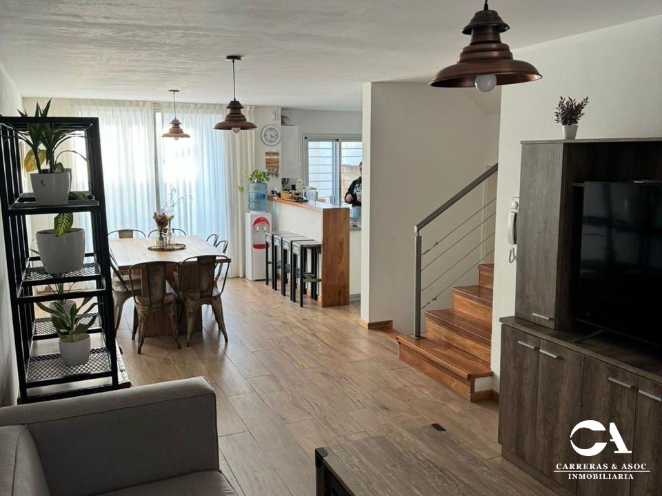 PLANTA BAJA: LIVING COMEDOR INTEGRADOS, COCINA CON BARRA DESAYUNADORA, TOILETTE COMPLETO, LUGAR DE GUARDADO BAJO ESCALERA. PATIO CON CESPED SINTÉTICO DE ALTA RESISTENCIA Y ASADOR. COCHERA PARA UN VEHICULO.